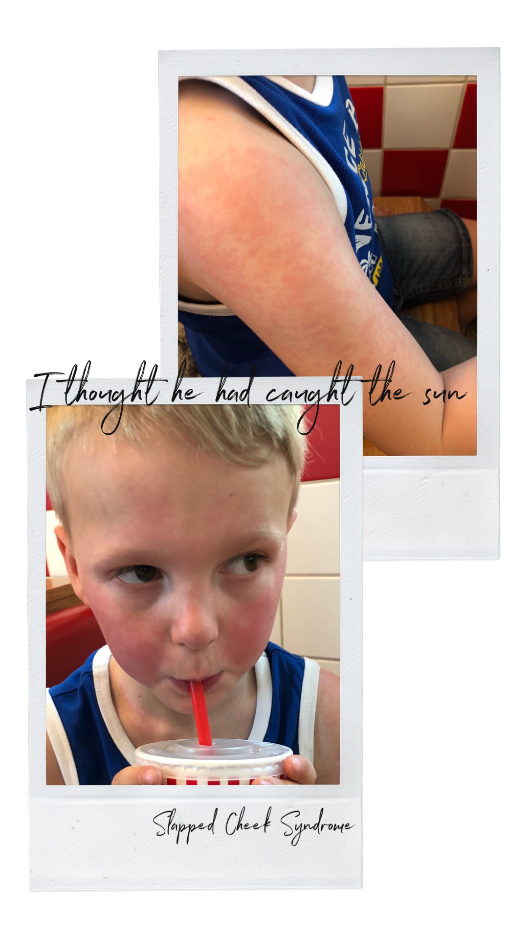 A week later Riley developed a bright red rash on his cheeks, I did the first thing most mums do and I googled his symptoms! At this point I realised that Riley had Slapped Cheek and I too could have contracted the virus.