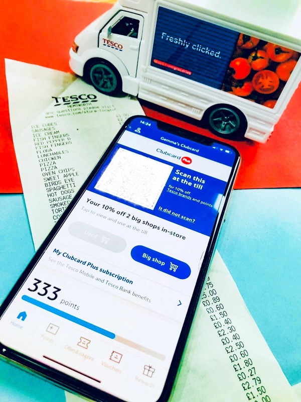 The process is super easy to follow, all you need to do is download the Tesco Clubcard App and subscribe to Clubcard Plus. You will then see two options for 10% off a big shop, the cashier will scan the barcode to apply your discount and then your  Clubcard to earn points.